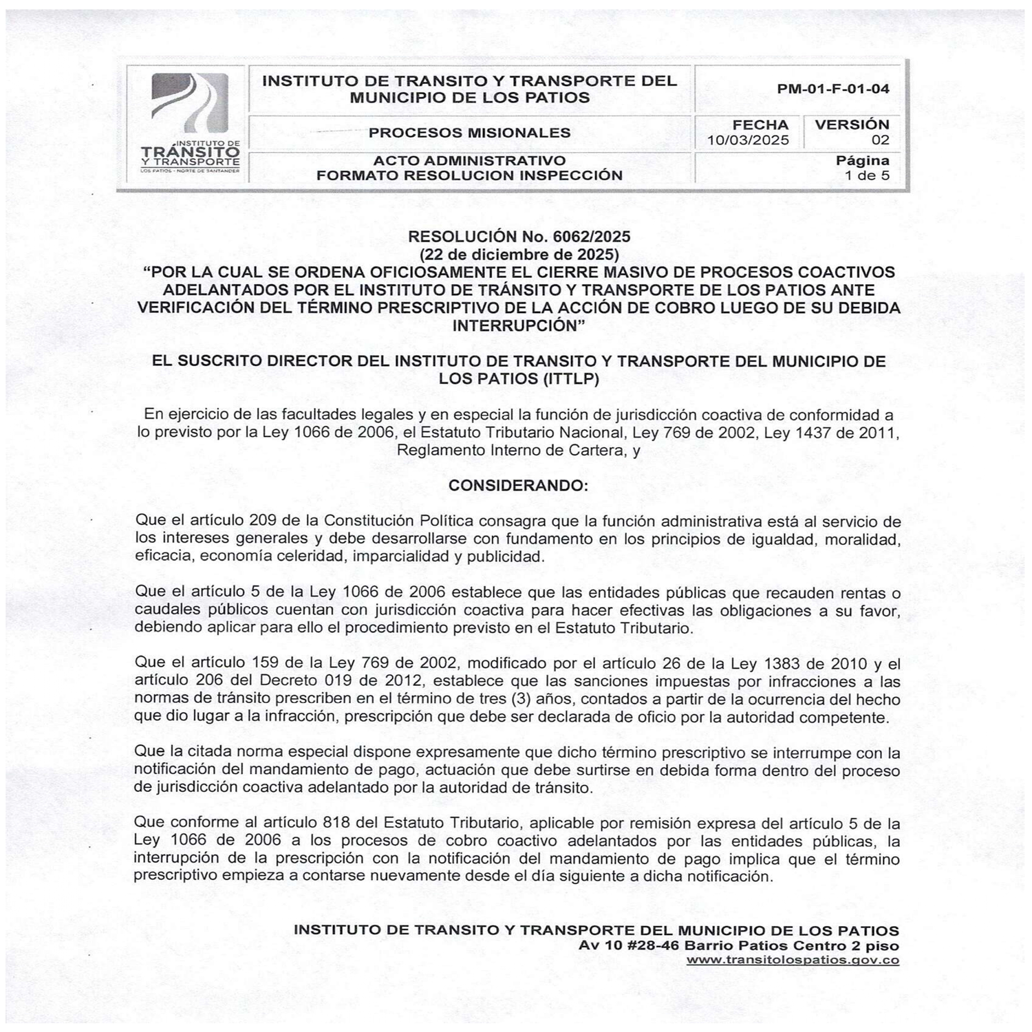 Ofrece servicios de apoyo al cumplimiento a la normatividad de tránsito, orientando sus esfuerzos en la generación de una cultura de seguridad vial, reduciendo los índices de accidentalidad y mortalidad, operando con recursos tecnológicos avanzados, contribuyendo a evitar la comisión de infracciones o contravenciones de manera eficaz, eficiente y con los más altos estándares de calidad brindando a nuestros usuarios atención integral, apoyado de un talento humano competente.